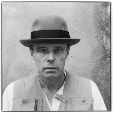 Joseph Beuys (1921-1986) est un des plus grands artistes allemand du XXe siècle. Il a laissé beaucoup de peintures, dessins, sculptures, performances, vidéos, installations et de nombreuses théories. Il était tès engagé politiquement. Il définira le concept de «sculpture sociale». Il pose un regard sur l'humanisme, l'écologie et la sociologie. Il fut considéré être le pendant allemand des artistes Fluxus. Je reviendrai sur ce mouvement dans un prochain billet.